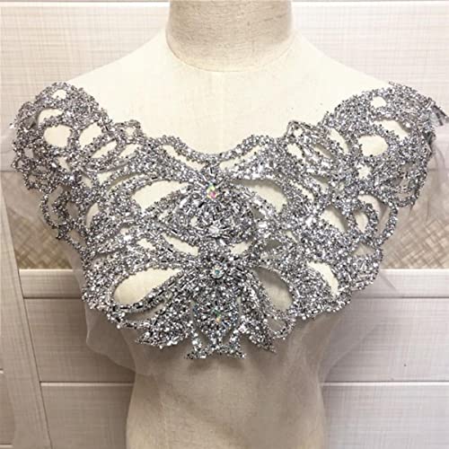 Appliques di collana con collare di strass di cristallo ricamato su doppio lato in oro e argento