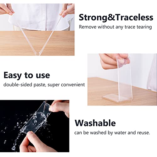 Riutilizzabile e senza lasciare tracce: il nastro biadesivo trasparente può essere lavato e riutilizzato, che non lascia residui di colla quando viene rimosso. Se si sporca, è possibile lavarlo, conservarlo in un luogo ventilato e attendere che il nastro si asciughi per ripristinare la sua adesività.
