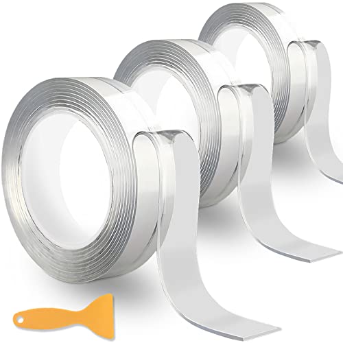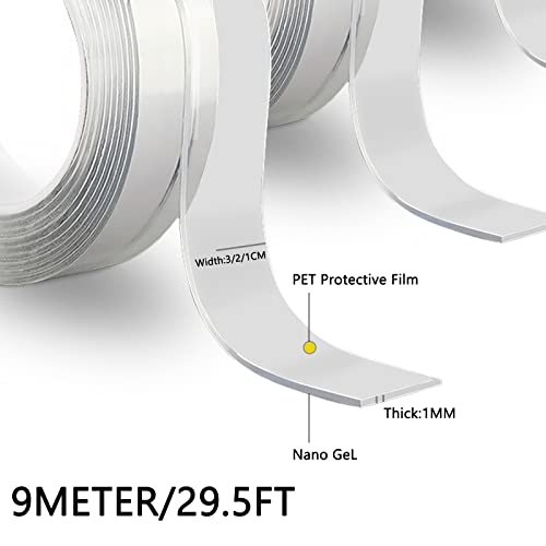 Does Not Apply Nastro biadesivo extra forte 9 m, nastro biadesivo trasparente, resistente all'acqua, Nano Tape per Home Office, (3 x 1 cm + 3 x 2 cm + 3 x 3 cm)
