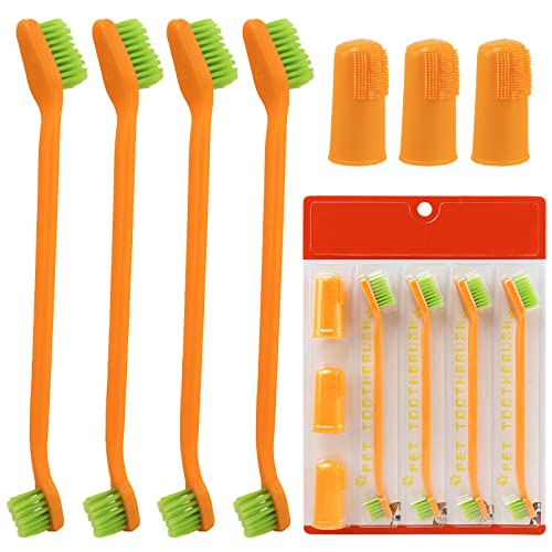 APPMOO Set di spazzolini per animali domestici | Spazzolino da denti per cani e gatti con setole morbide | Spazzolino da denti in silicone per animali domestici | Confezione da 7 | Arancia