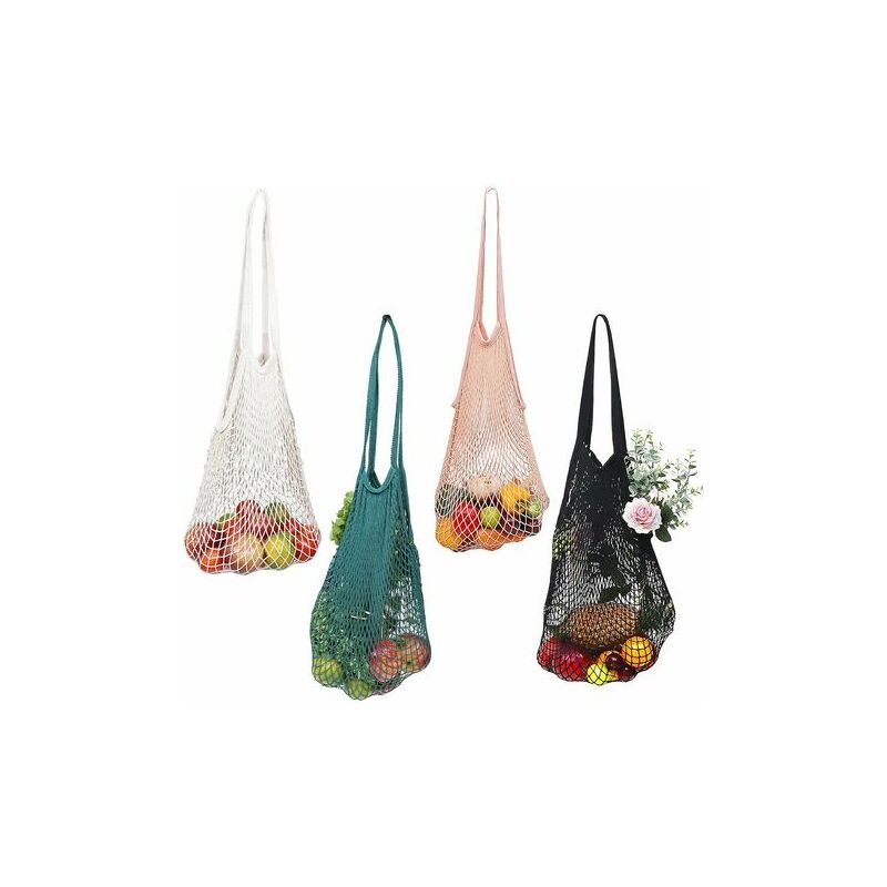 4 ECOBAG IN RETE: questo set include 4 borse in rete. Questa rete per la spesa è realizzata in cotone di qualità ed è disponibile in 4 colori diversi. Ogni borsa è resistente e durevole e supporta un peso di 5 kg, ideale per la spesa, la conservazione a casa o a scuola. Queste borse a rete ecologiche misurano 38 cm di larghezza e 38 cm di altezza. Nella parte superiore di ogni borsa è presente un manico lungo e robusto che misura 25 cm di lunghezza. RETI IN COTONE: questa rete per la spesa è realizzata in cotone traspirante, ecologico e biodegradabile per preservare la pianta. Questa rete vegetale riutilizzabile ed espandibile si allunga per fornire più spazio. Le nostre borse sono disponibili in 4 colori diversi: rosa, bianco, nero e blu. Puoi organizzare i tuoi prodotti in categorie in base a questi colori. Quando non vengono utilizzate, queste borse leggere possono essere piegate e riposte in una borsa, nello zaino o in una tasca. RIUTILIZZABILI E LAVABILI: A differenza delle reti