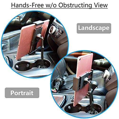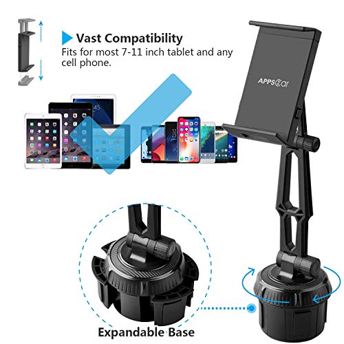 APPS2Car Supporto Universale per portabicchieri per Auto con Tablet/Braccio Lungo Regolabile [2 in 1] per Tablet e Telefono Cellulare iPad/Android da 7-11 Pollici