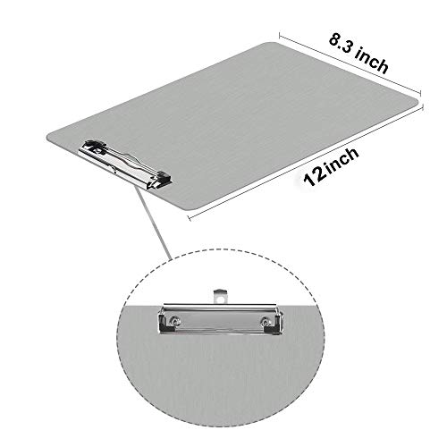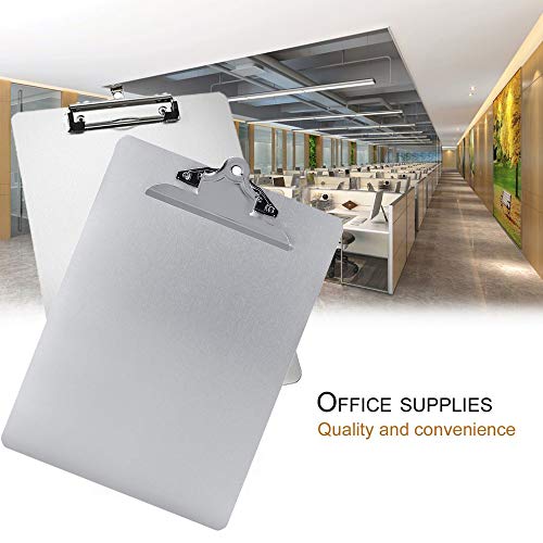 Appunti in alluminio A4 con clip e occhio di sospensione, 30,5 x 21,1 cm, porta appunti, porta documenti e menu, colore: argento (graffetta)