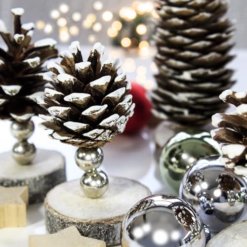 Decorazione natalizia ideale: ogni pigna è laccata di bianco e sembra vera neve. Le nostre decorazioni a pigna sono fornite con una corda argentata lucida sulla superficie in modo che possano essere facilmente appese, perfette per decorare ghirlande dell'Avvento, alberi di Natale e finestre.