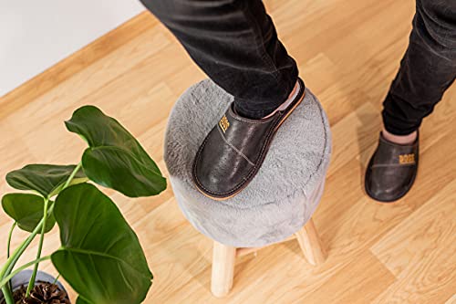 APREGGIO - Pantofole in Pelle per Uomo - Suola in Gomma Piena - Confortevoli da Indossare - Morbidezza - Prodotto 100% Naturale - Realizzate a Mano (Nero, 44)