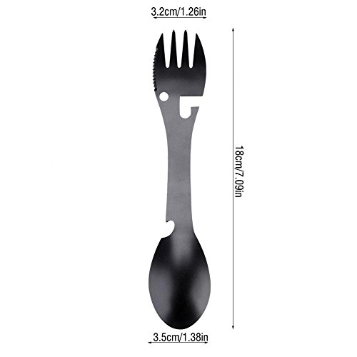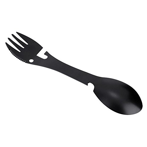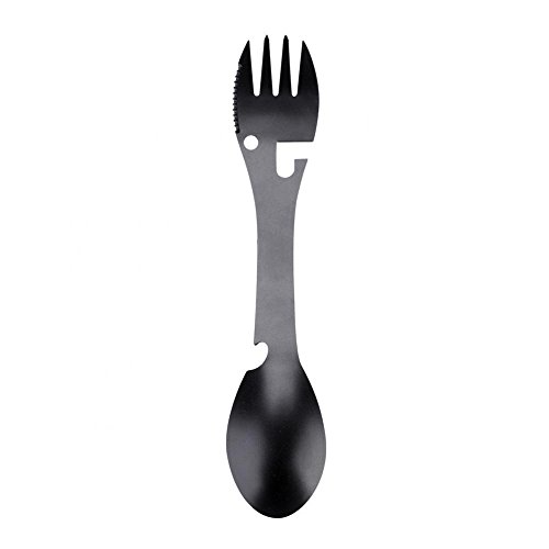 Funzione 5 in 1: può essere cucchiaio, forchetta, apribottiglie, apriscatole e taglierina a dente di sega.