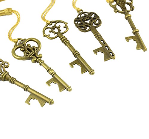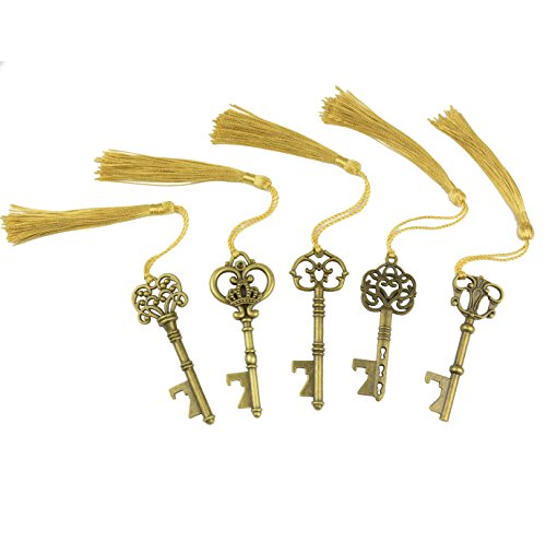 Apribottiglie a Forma di Chiave di Scheletro Misto 15 con Nappe di Seta Per la Decorazione di Nozze in Stile Rustico Classico (Bronzo Antico)