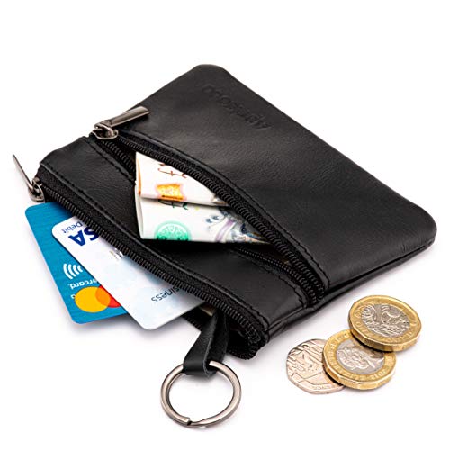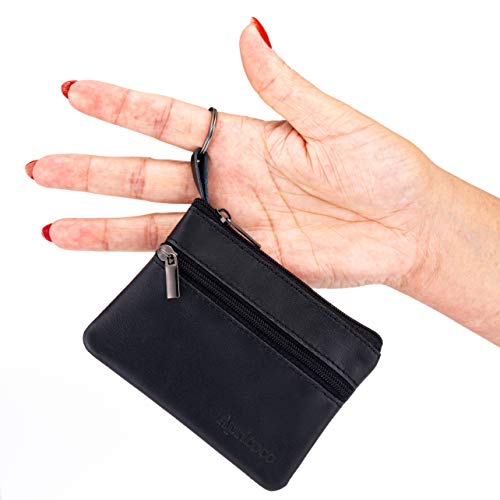 APRICOCO - Portamonete con chiusura RFID per donne e uomini, in pelle, con chiusura a cerniera e confezione regalo