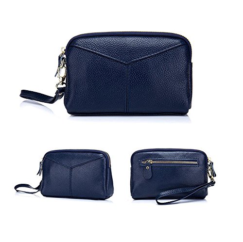 AprinCtempsD Pochette in Vera Pelle Clutch Elegante Portafoglio Multifunzionale con Cerniera per Donna (Blu)