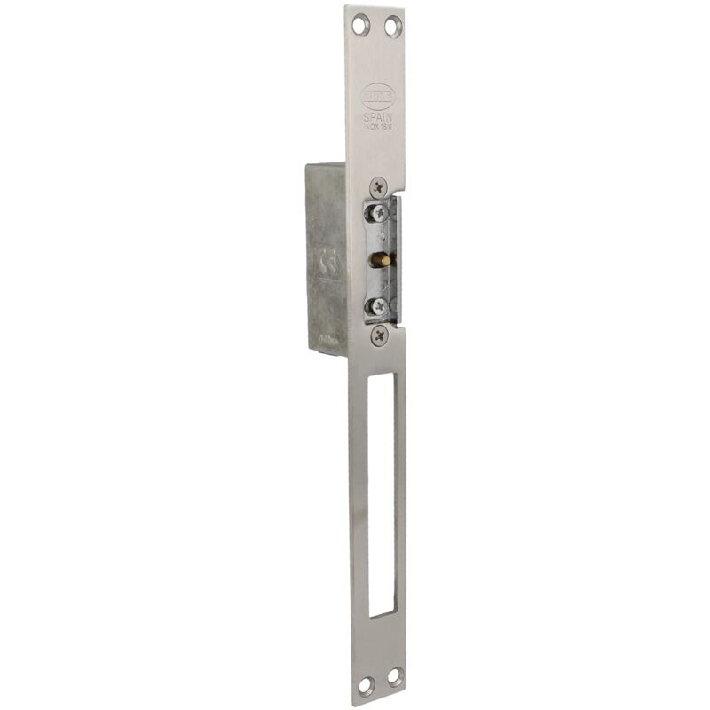 Apriporta elettrico da inserire anche chiamato cricchetto elettrico. Frontale in memoria e chiusura regolabile. Senza inibitore o leva di sblocco. In acciaio inox. È un dispositivo elettromeccanico che controlla a distanza l'apertura della porta dal telefono in abitazioni o da un determinato punto di controllo. Include bobina da 8-12 V di corrente alternata. Amperaggio: 1,1 A Dimensioni: 250 x 25 x 3 mm. Serratura elettromeccanica per controllo accesso indicata porte con serrature metalliche con leva scorrevole o basculante. È perfetta per porte di portali, strutture commerciali, uffici, centri d'affari e altre istituzioni in cui il controllo degli accessi è molto importante. Molto utile per evitare furti e garantire la sicurezza di tutta la comunità.