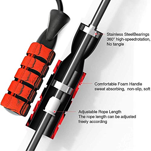 【Massimo comfort】: L'impugnatura della corda per saltare è ricoperta di morbida schiuma di memoria imbottita, le impugnature sono abbastanza comode anche per una presa a lungo. La schiuma interna è resistente all'umidità, agli odori e assorbe il sudore, in modo da avere una migliore esperienza sportiva