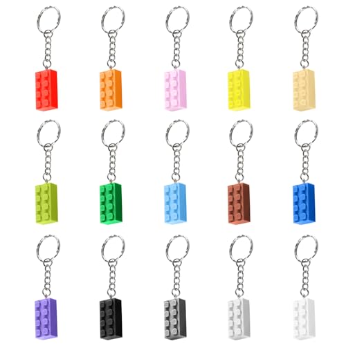 APRRMLIZW Portachiavi A Blocchi di Costruzione 15 Pezzi Portachiavi Utilizzato per Feste Compleanno Blocco di Costruzione Portachiavi per Portachiavi Bambini Rifornimenti per Feste A Tema Mattoni