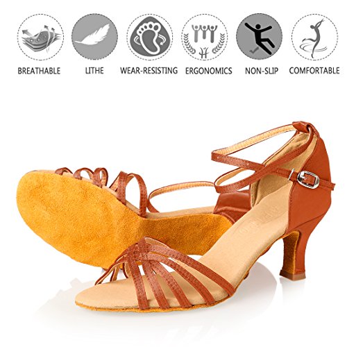 APTRO - Scarpe da donna, latine, in raso, da rumba / Cha-Cha-Cha / samba / Jive / corrida / danza da camera / danza moderna, leggere ed equilibrate, resistenti agli sfregamenti della parte alta del tallone, (marrone), 37 EU