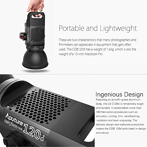 Aputure LS COB 120d LED lampada portatile da studio, 6000 K, illuminazione continua TLCI/CRI 96 + controllo di temperatura, 18 dB, ultra-silenziosa, baionetta Bowens + panno Andoer