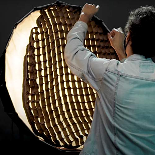 Diametro da 85 cm: grande apertura con profondità compatta, 85 cm x 45 cm. Leggera e portatile: con un peso di appena più di 2 kg, la Light Dome SE può essere facilmente combinata con tutte le luci LED Bowens Mount.