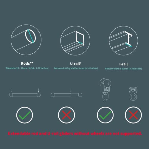 Nota: è richiesto un hub Aqara Zigbee 3.0. (*Assicurati che il firmware per l'hub Aqara e l'app Aqara Home siano stati aggiornati all'ultima versione.) Monta facilmente il Curtain Driver E1 sul tuo binario per tende o riloga per tende esistente senza strumenti aggiuntivi, sarà nascosto dietro la tenda. (*NOTA: Supporta la maggior parte delle tende a riloga (incluso il «kit occhielli»), escluse le riloghe estensibili. Gamma di diametri riloga: 25 - 32 mm.)