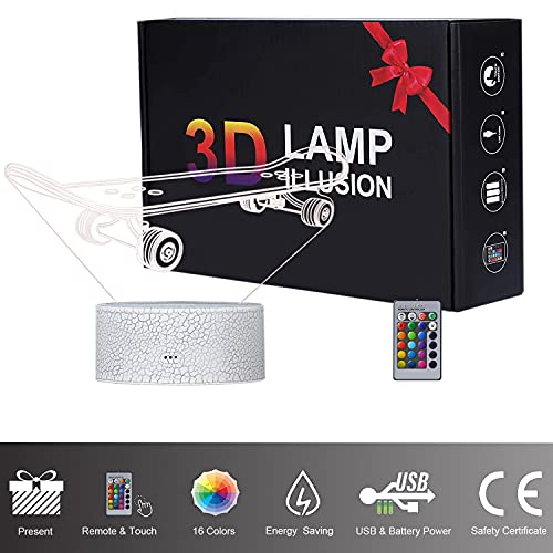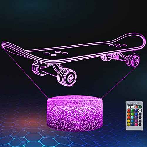 AQOTER 3D Dinosaur Night Light Lampada 3D Illusione Regali di dinosauri giocattolo16 Cambi di Colore e Telecomando -Regali per Bambini da 3 4 5 6+ anni (skateboard)