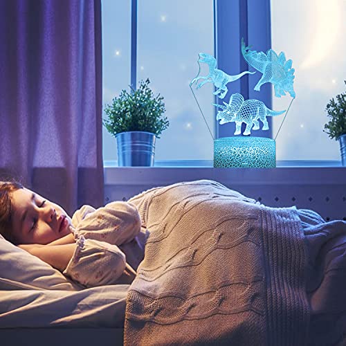 AQOTER 3D Dinosaur Night Light Lampada 3D Illusione Regali di dinosauri giocattolo16 Cambi di Colore e Telecomando -Regali per Bambini da 3 4 5 6+ anni (crab)