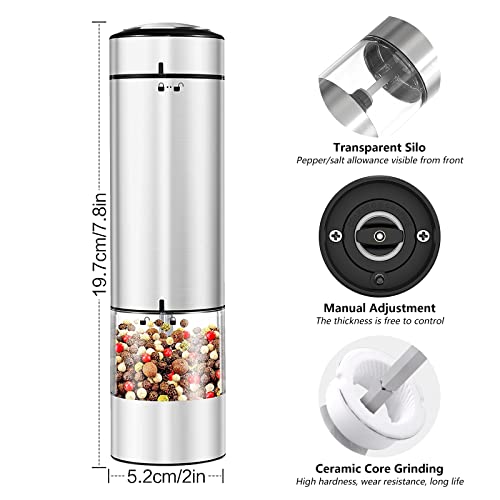 AQTZGOS Macinasale elettrico con macinino a batteria in acciaio inox con luce con funzionamento automatico con una sola mano con macinino elettronico regolabile in ceramica