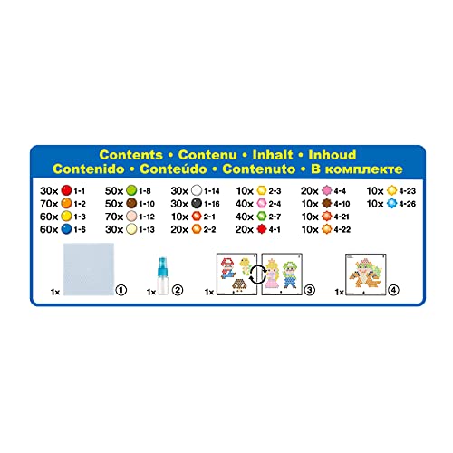 Questo set completo include più di 690 perline in 22 colori, il vassoio di creazione, lo spruzzino, i fogli di diegno fronte e retro e istruzioni.