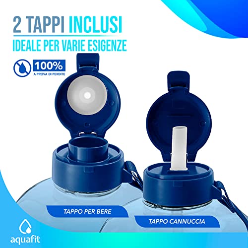 AQUAFIT Borraccia Palestra 2,3 lt con Cannuccia - Borraccia 2 Litri Motivazionale con Indicatore Tempo - Gallon Water Bottle