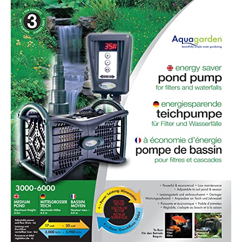 Aquagarden, pompa a risparmio energetico per fontane, cascate e giochi d'acqua, potenza e flusso d'acqua regolabili, protezione dal funzionamento a secco, potenza fino a 6000 litri