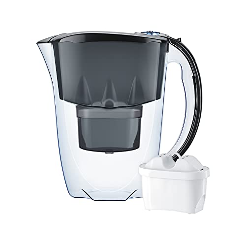 AQUAPHOR Caraffa filtrante Amethyst nera con 1 filtro MAXFOR+ I Caraffa da 2,8l I Su misura per la porta del frigo I Riduce calcare e cloro I Caraffa filtrante da tavolo I Caraffa di stile