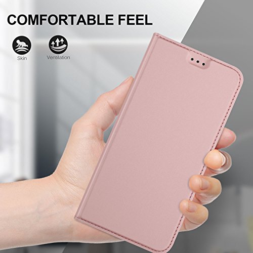 KuGi BQ Aquaris V Plus Cover Slim Flip Cover Custodia per BQ Aquaris V Plus Smartphone (Flip Series - Oro Rosa)