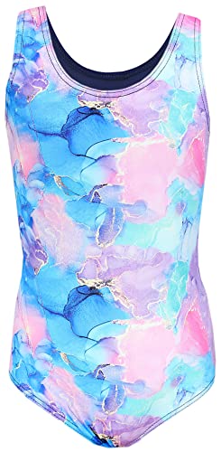 Aquarti Costume da Bagno da Bambina con Stampa, Tie Dye/Blu Scuro/Blu/Viola/Rosa, 128