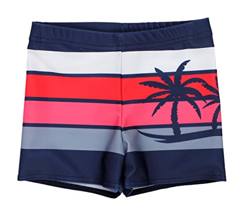 Aquarti Pantaloncini da Bagno Bambino con Motivo a Strisce, Blu Scuro/Rosso/Palm, 110