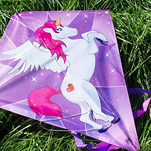 CIM Aquilone - Fantasy Eddy Einhorn - Aquilone monofilo per Bambini a Partire da 3 Anni - 65 x 72 cm - comprende Corda per Aquilone da 80 m e Coda a Strisce