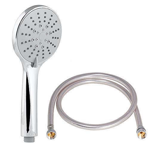 AQVALESS Soffione Doccia + 1.5M Flessibile Doccia, 5 Modelli di Getto con Tubo Doccia in Acciaio Inox, Assemblato in Italia, Universale & Montaggio Fai da Te, Risparmio idrico [Classe Energetica A+]