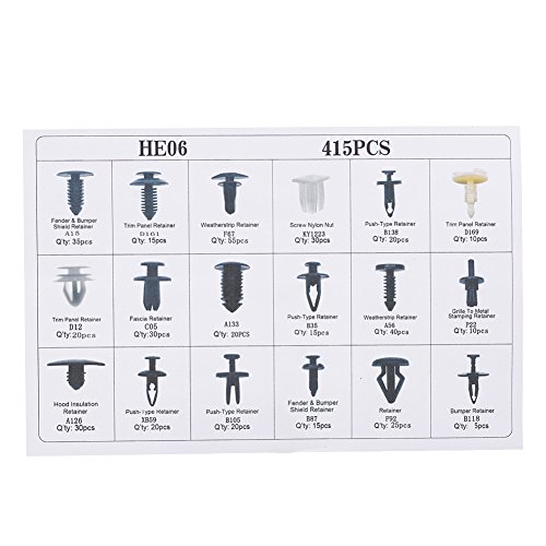 Confezione del prodotto: 415 * dispositivi di fissaggio per auto assortiti, 6 * strumento di rimozione.