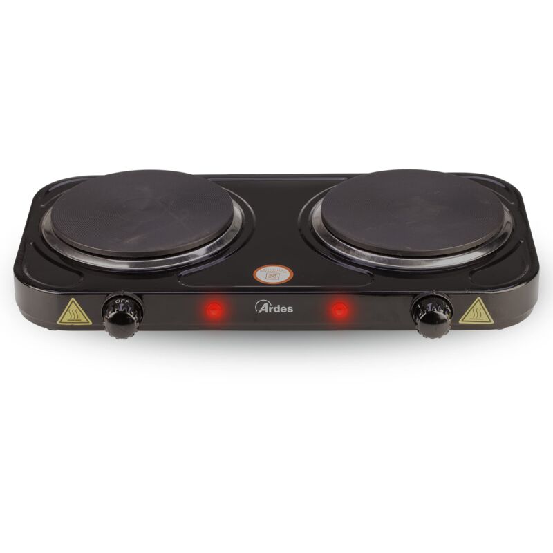 Descrizione Ardes AR1F20, da tavolo, Piastra sigillata, di ghisa, Nero, 1000 W, Rettangolare Ardes AR1F20. Installazione: da tavolo, Tipo di piano cottura: Piastra sigillata, Tipo di superficie superiore: di ghisa. Tipo di controllo: Manopola, Posizione di controllo: Frontale. Potenza aggregata (elettrica): 2000 W, Tensione di ingresso AC: 220 - 240, Frequenza di ingresso AC: 50/60. Fornello elettrico in acciaio con 2 termostati per la regolazione della temperatura e piastre in ghisa. Le piastre in ghisa da diametro 15,5 cm trattengono il calore per un lungo periodo a fornello spento, consentendo un notevole risparmio energetico. Contenuto della confezione 1 x Fornello Elettrico Tikappa AR1F20