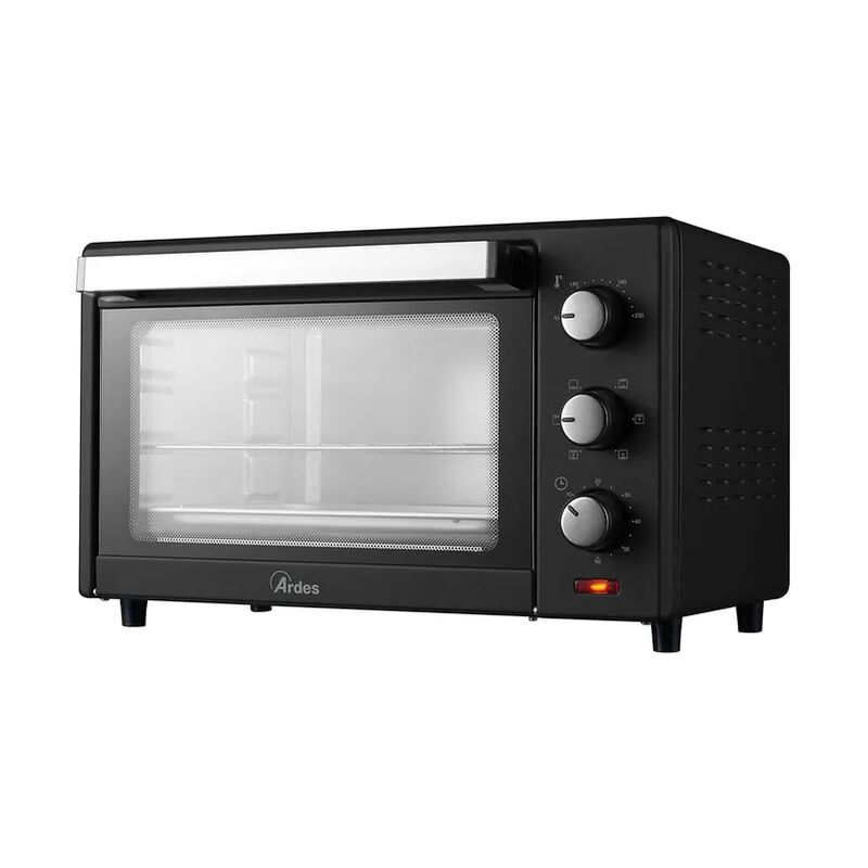 Scheda tecnica completa Forno elettrico ventilato con grande capienza, ottima alternativa al forno da incasso. Design moderno ed elegante. Termostato multiposizione regolabile da 100° fino a 230°C. 6 funzioni di cottura: sopra, sotto, sopra + sotto, sopra + ventilazione, sotto + ventilazione, sopra + sotto + ventilazione. Timer 60 minuti con spegnimento automatico e segnale acustico di fine cottura. Le diverse funzioni lo rendono molto versatile e semplice da usare. La funzione ventilazione permette una cottura più veloce e uniforme dei cibi che lascia i cibi fragranti fuori e più umidi allinterno. Il forno statico, invece, produce una cottura più lenta e più delicata, ideale per ottenere pietanze ben cotte e asciutte anche allinterno. Porta con doppio vetro. Spia di funzionamento. Accessori in dotazione: leccarda, griglia e pinza.