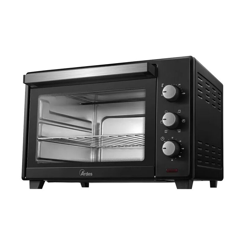Scheda tecnica completa Forno elettrico ventilato con grande capienza, ottima alternativa al forno da incasso.Design moderno ed elegante.Termostato multi posizione regolabile da 100° fino a 230°C. 6 funzioni di cottura: sopra, sotto, sopra + sotto, sopra + ventilazione, sotto + ventilazione, sopra + sotto + ventilazione.Timer 60 minuti con spegnimento automatico e segnale acustico di fine cottura.Le diverse funzioni lo rendono molto versatile e semplice da usare.La funzione ventilazione permette una cottura più veloce e uniforme dei cibi che lascia i cibi fragranti fuori e più umidi all'interno.Il forno statico, invece, produce una cottura più lenta e più delicata, ideale per ottenere pietanze ben cotte e asciutte anche all'interno.Porta con doppio vetro.Spia di funzionamento. Accessori in dotazione: leccarda, griglia e pinza.