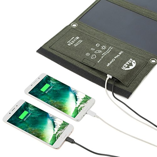 Araer, Caricatore a pannello solare, impermeabile, per auto, con 2 porte USB, per iPhone e iPad, da 21 W
