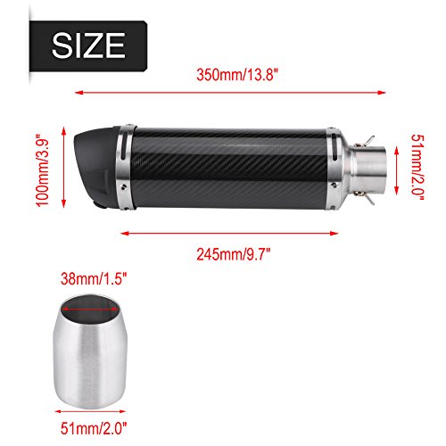 Viene fornito con un adattatore di saldatura da 51 mm, adatto per la maggior parte delle moto, fuoristrada e scooter con tubi di scarico con diametro di 38 mm-51 mm.