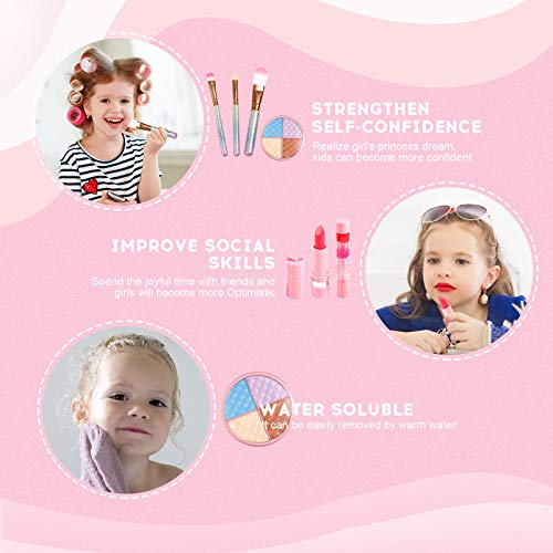 ARANEE Trucchi Bambina Set, 17 Pezzi Giocattoli per Il Trucco dei Bambini Lavabile Makeup Kit con Trousse Trucchi Trucco Giocattoli Bambini 3 4 5 6 Anni