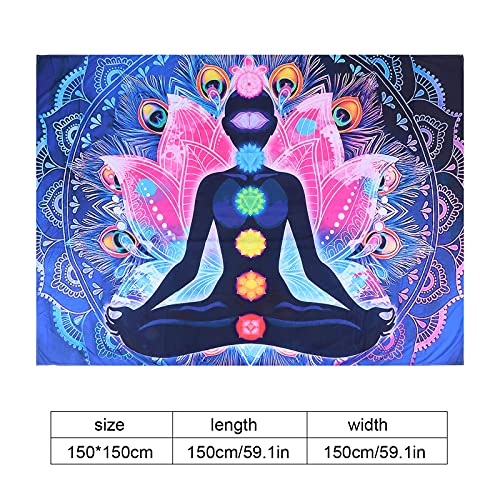 Arazzo da Appendere a Parete, Coperta da Tappezzeria a Sette Chakra, Divisorio per Camera da Letto con Meditazione Yoga Mandala Bohémien(150 * 150cm)