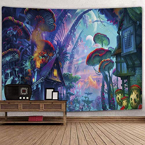 JPYZ Arazzo da Appendere Alla Parete Della Foresta Psichedelica,Coperta da tiro per camera da letto Soggiorno Decor,Hippy Tapestry Wall Hanging Print Tapestry Beach