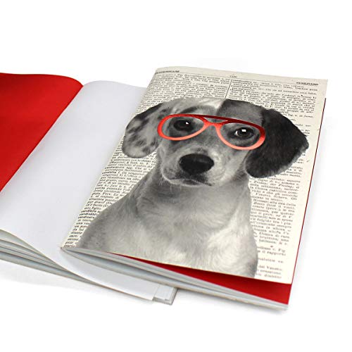 elegante stampa a caldo con la sagoma degli occhiali, Immagini di 4 razze di cani sul dizionario in lingua