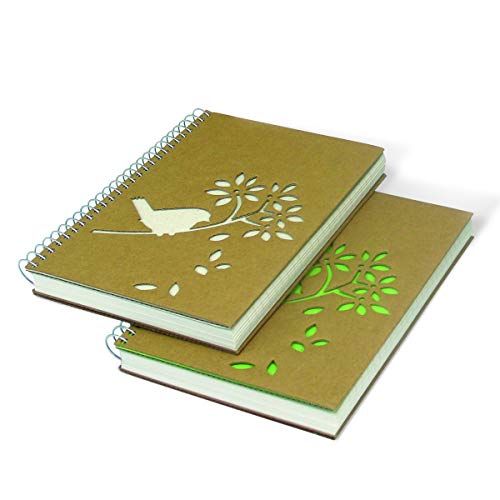 Arbos Quaderno a Spirale Dreams, KIT 2 PEZZI Medium Dimensione A5 15x21 cm,Copertina in Cartoncino Avana Traforata, 120 Fogli a Righe in Carta Riciclata 100gr, 2 colori