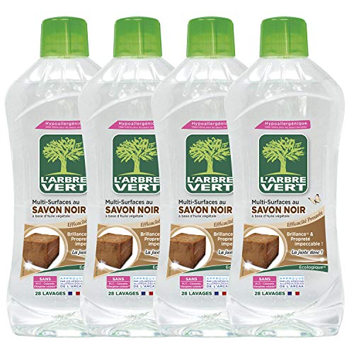 L'Arbre Vert - Detergente Multi-Uso, Ideale per Tutte Le superfici, al Sapone Nero, Confezione di 4 fustini da 1 l