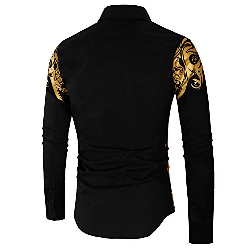 ARbuliry Camicia da Uomo Manica Lunga con Stampa Floreale Oro Laterale, Risvolto Tinta Unita Top Bottoni Neri Camicetta Casual