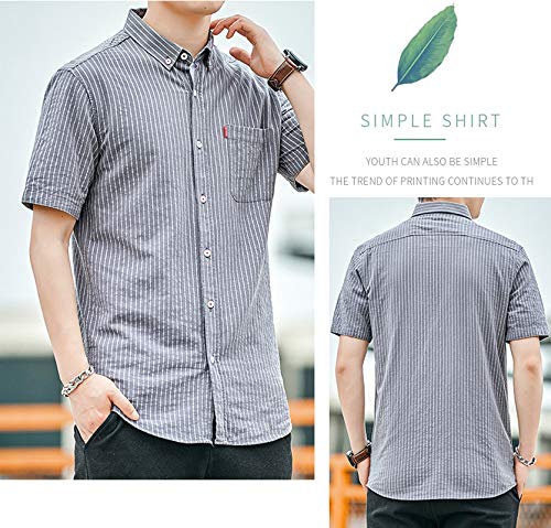 ARbuliry Camicie Casual da Uomo, Top in Cotone a Maniche Corte Camicia a Righe con Bottoni Tinta Unita con Tasca