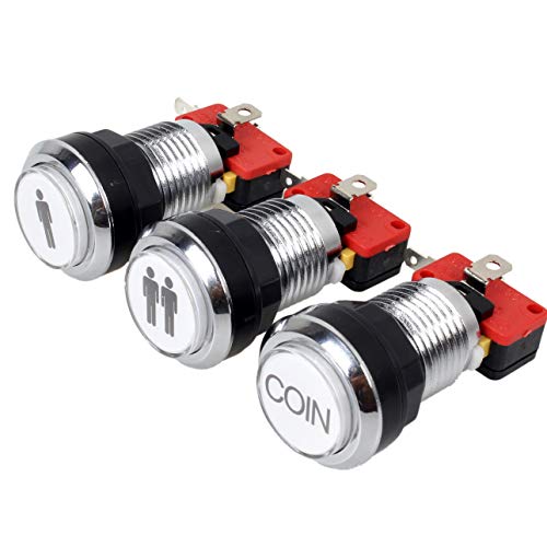 Arcade Chrome Silver Plated 5V 12V LED illuminato Pulsanti di avvio 1P 2P Player 2x pulsanti Coin per MAME JAMMA Giochi di combattimento Videogiochi Arcade Parti del kit