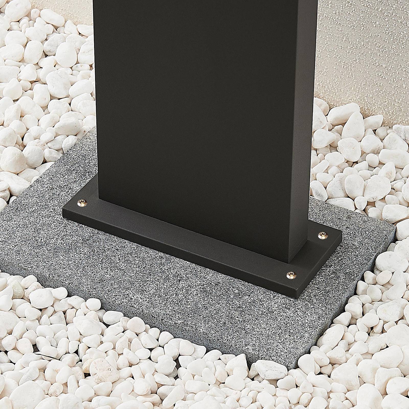 Lampione LED Advik di alluminio grigio scuro con testata curva Advik è una lampada convincente per chi cerca un'illuminazione da esterni moderna. La costruzione di alluminio è infatti molto attuale. La testata inclinata assicura un'illuminazione gradevole ed efficace in giardino o in cortile, mettendo in luce gli eventuali ostacoli e aiutando a orientarsi bene. I LED incorporati vantano un'ottima efficienza energetica e quindi si ha la certezza di consumare poco. La lampada ha il grado di protezione IP65, perfettamente compatibile con l'esterno.