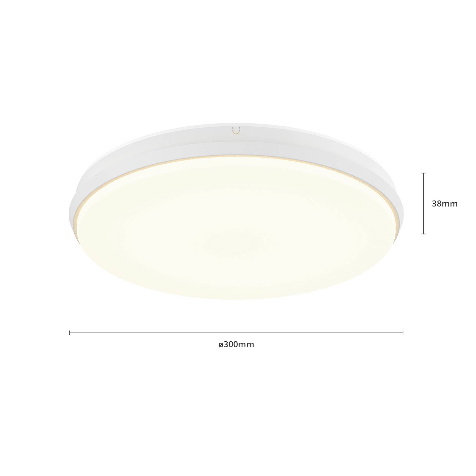 Plafoniera rotonda a LED bianchi Brady con robusto alloggiamento in plastica e colore della luce selezionabile, IP54 Brady produce una luce brillante e può essere utilizzato non solo nei salotti, ma anche come lampada da soffitto per stanze umide con il suo alto grado di protezione IP54. L'alloggiamento rotondo in plastica di colore bianco si dimostra robusto e rende Brady una sorgente luminosa semplice e particolarmente versatile che non solo fornisce una buona luminosità in aree private, ma può essere utilizzata anche per l'illuminazione di locali commerciali ed edifici pubblici. Se si devono installare più apparecchi, la possibilità di un cablaggio passante è un vantaggio. La luce senza sfarfallio dei LED può brillare in tre diversi colori di luce, uno dei quali deve essere selezionato tramite l'interruttore DIP integrato prima del montaggio sul soffitto. - Opzione di cablaggio passante - senza sfarfallio - regolazione del colore della luce liberamente selezionabile - Grado di resistenza agli urti IK04 - SDCM < 5