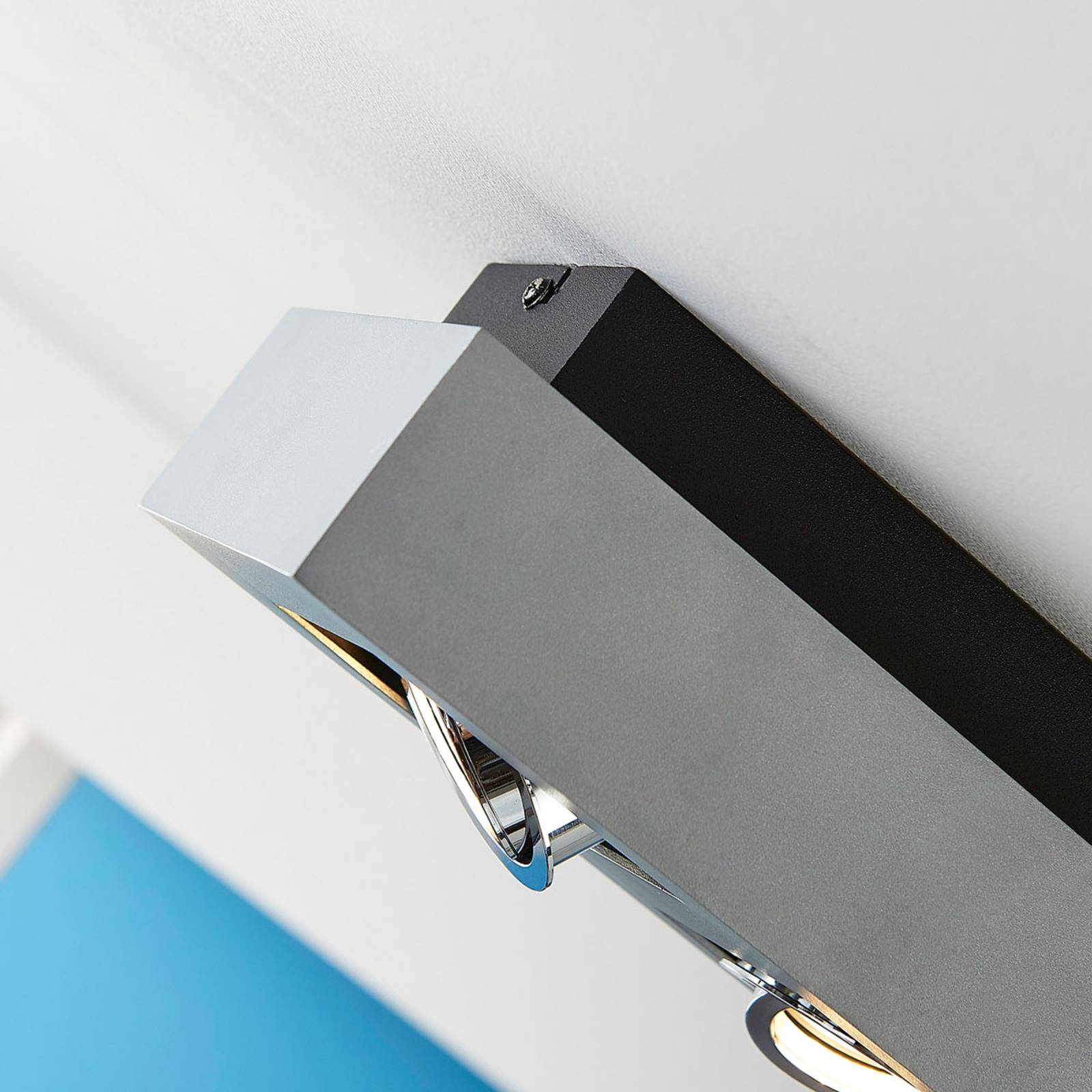 Vince - faretto da soffitto con tre prese GU10 Vince è dotato di inserti orientabili per ottenere un fascio di luce più personalizzato che soddisfi i requisiti in loco. L'apparecchio può essere dotato di sorgenti luminose GU10. Il telaio angolare del faretto da soffitto è in alluminio, verniciato in grigio argento e quindi con un tocco senza tempo. - con morsetto ad attacco rapido di alta qualità e senza viti (meccanismo a molla resistente, sicuro e senza attrezzi)